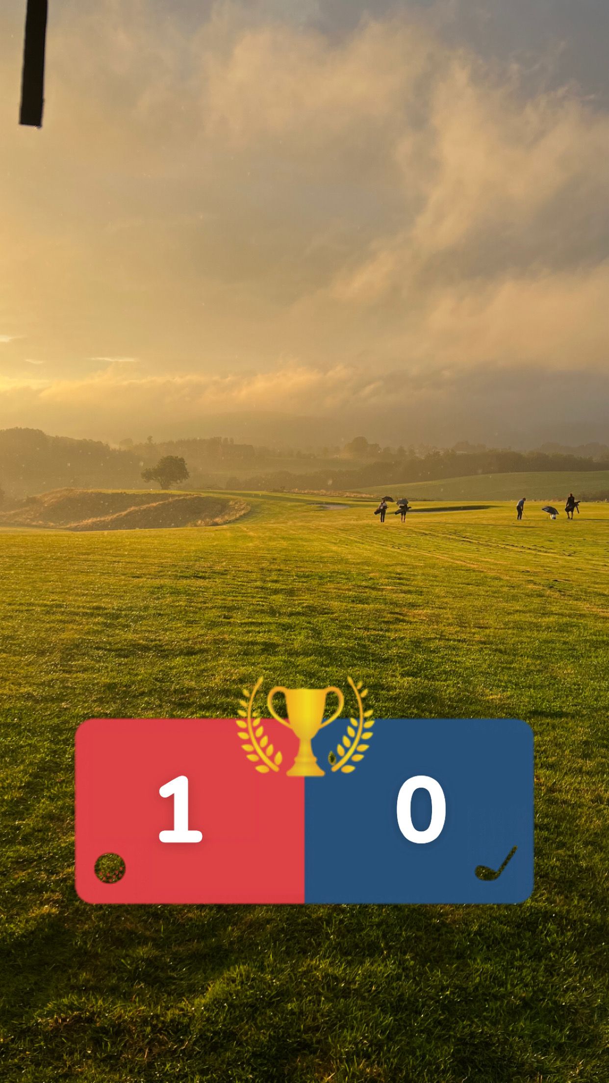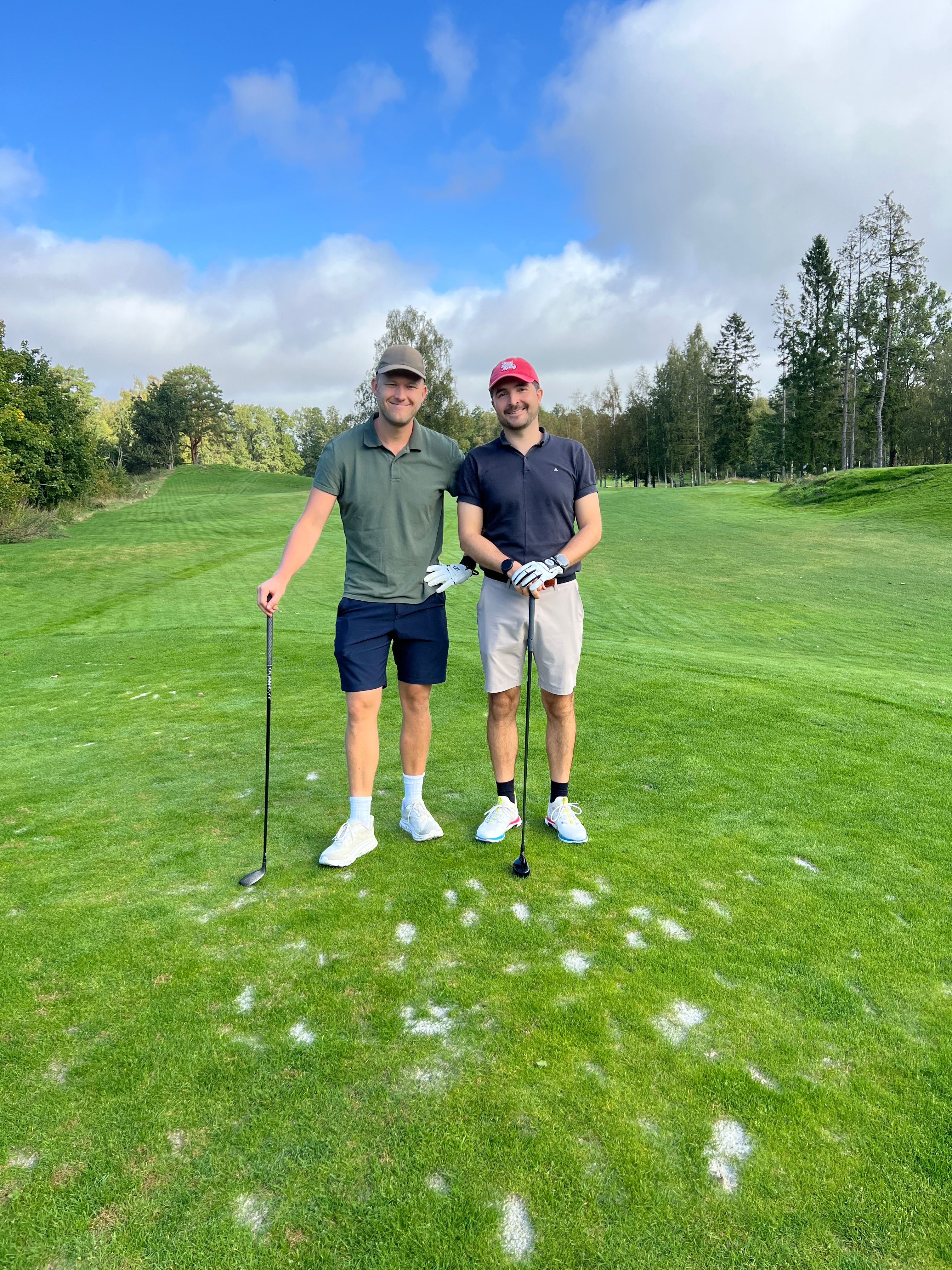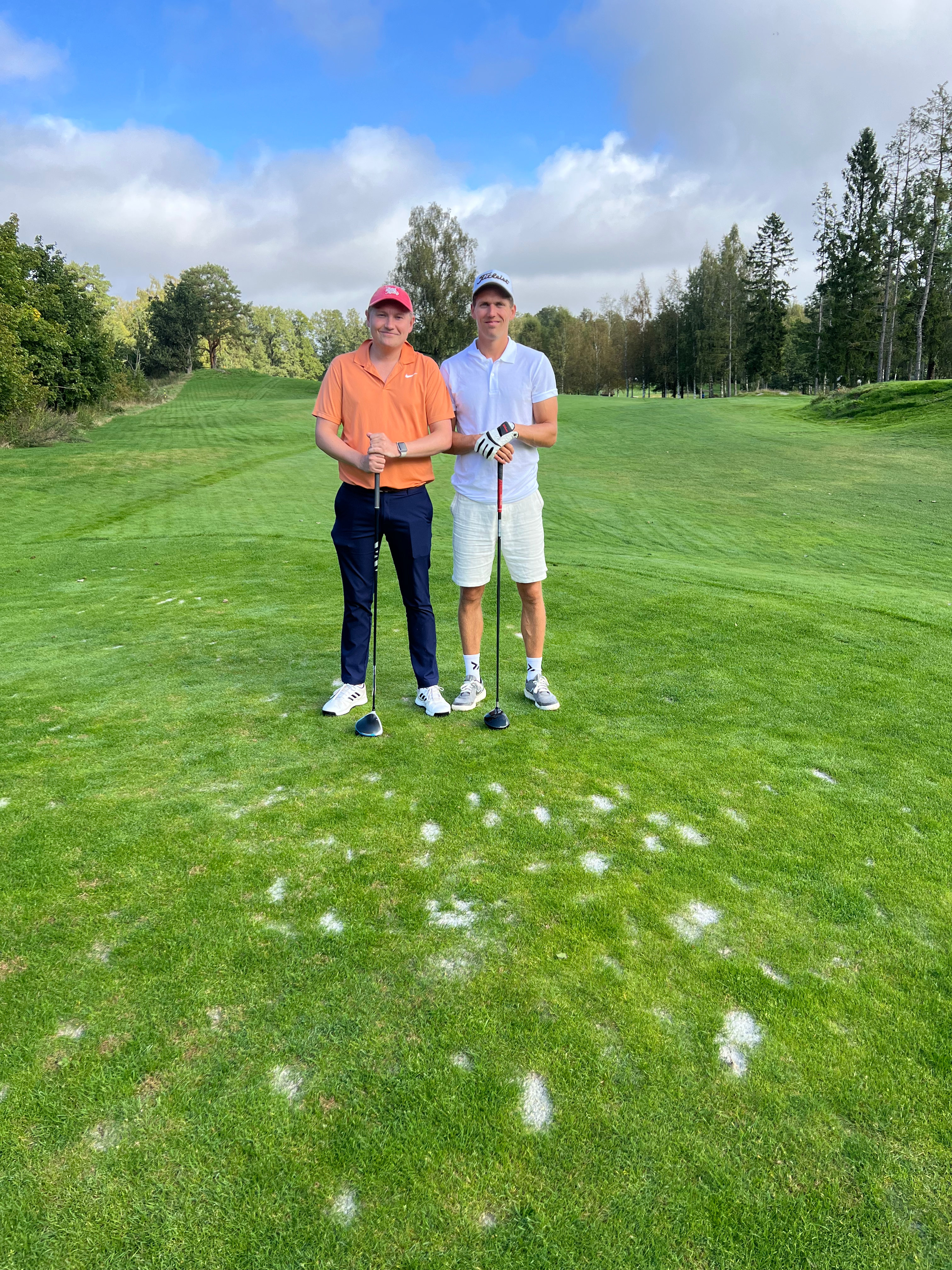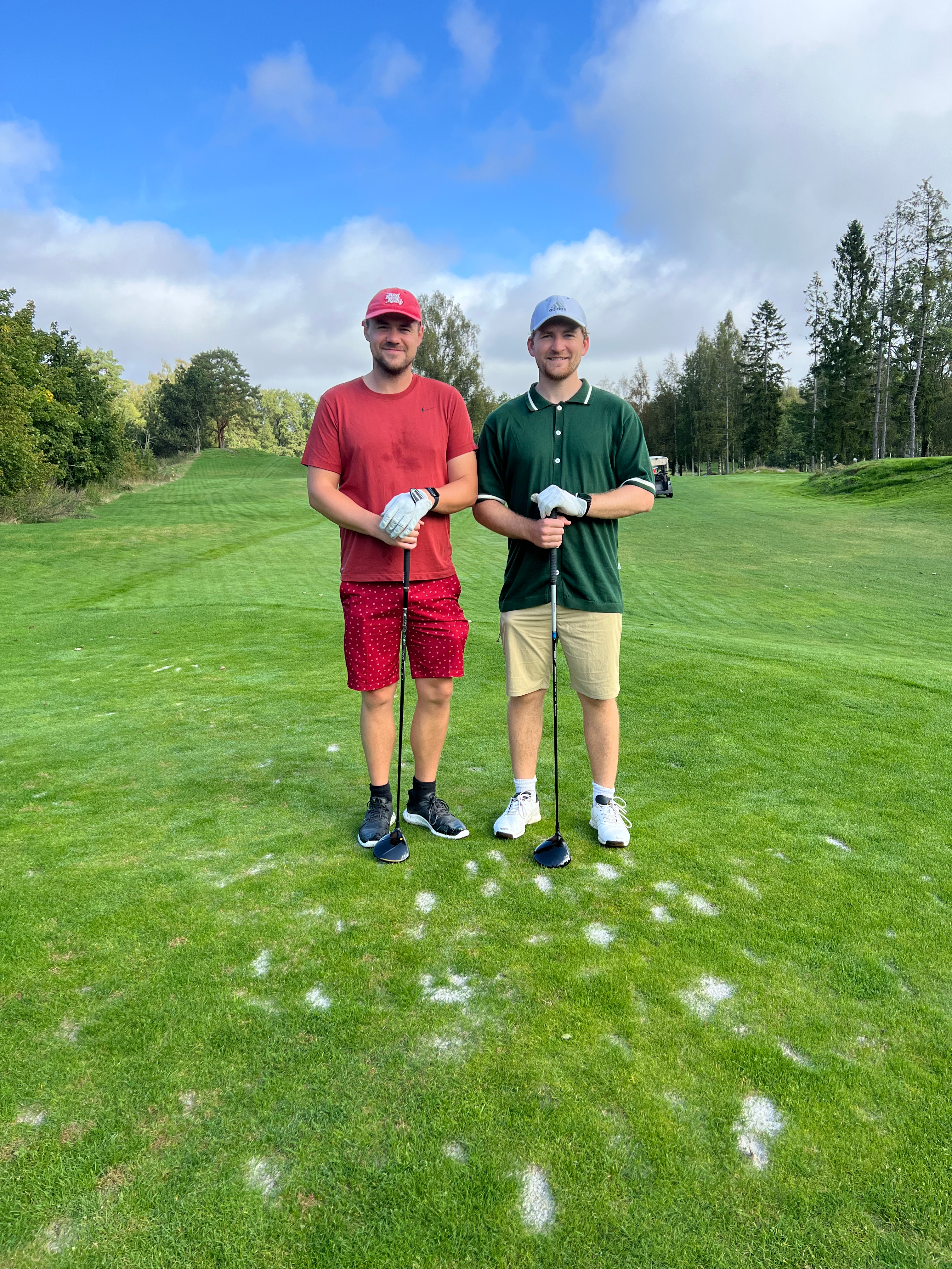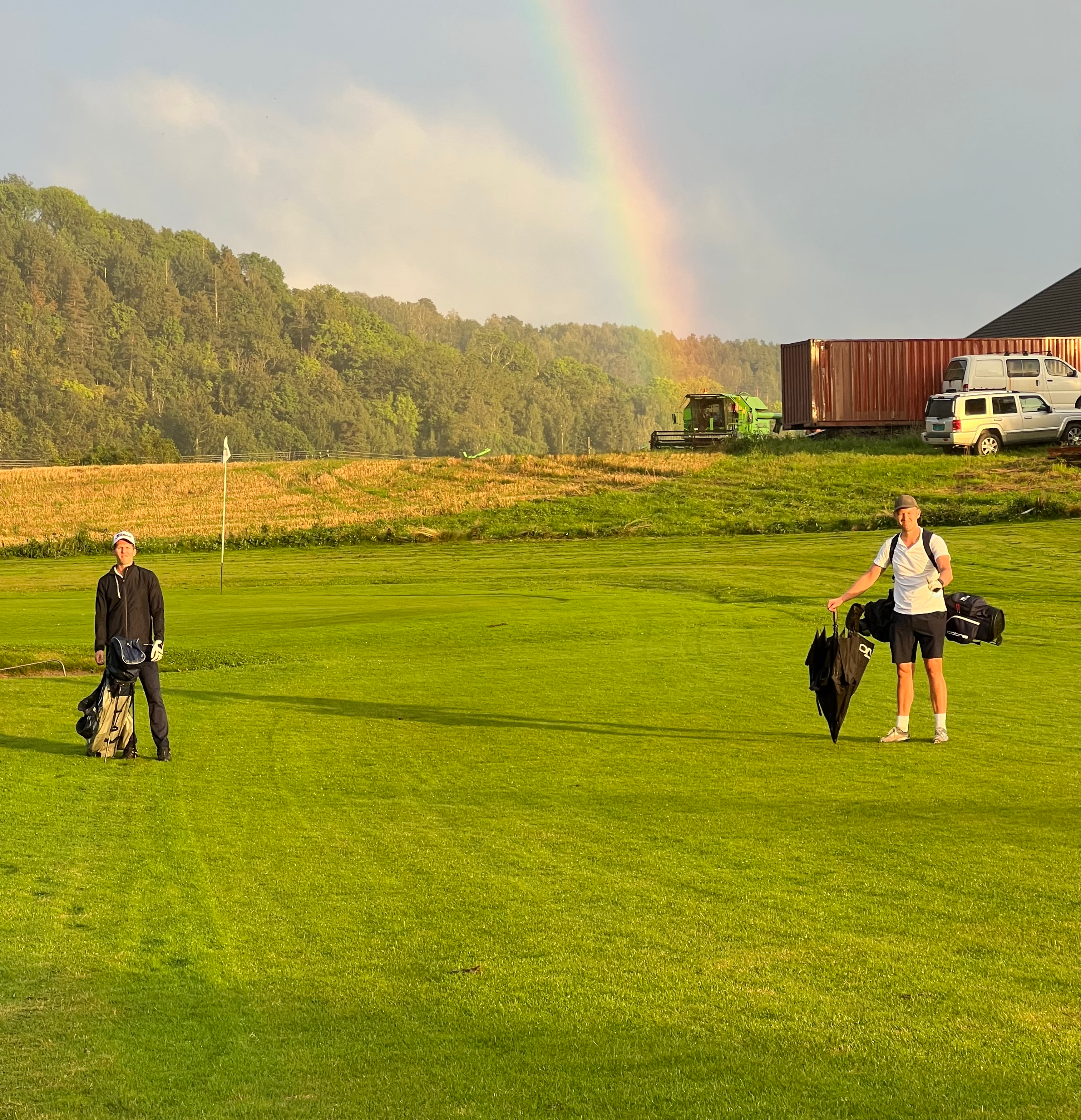 Runden startet med et mildt sakt karakterbyggende vær, hvor Lars gjorde sjakktrekket med å legge paraplyen i bilen. Lagene knivet i det som var en ekstremt jevn turnering, der uheldige Fredrik måtte se en vanndam ligge mellom hans birdieputt og hullet. Regnet ga seg og frem kom regnbuen med vakre bilder