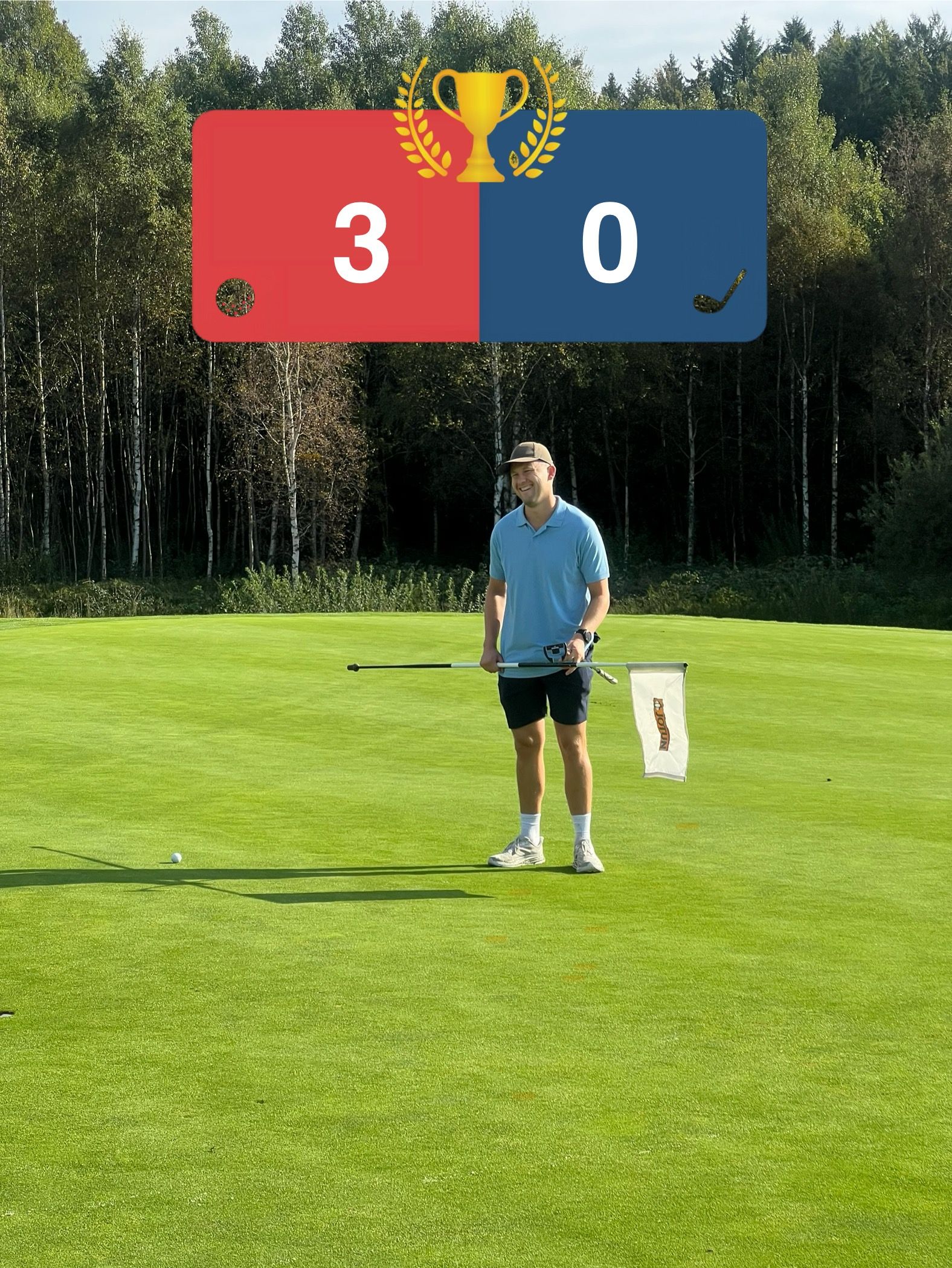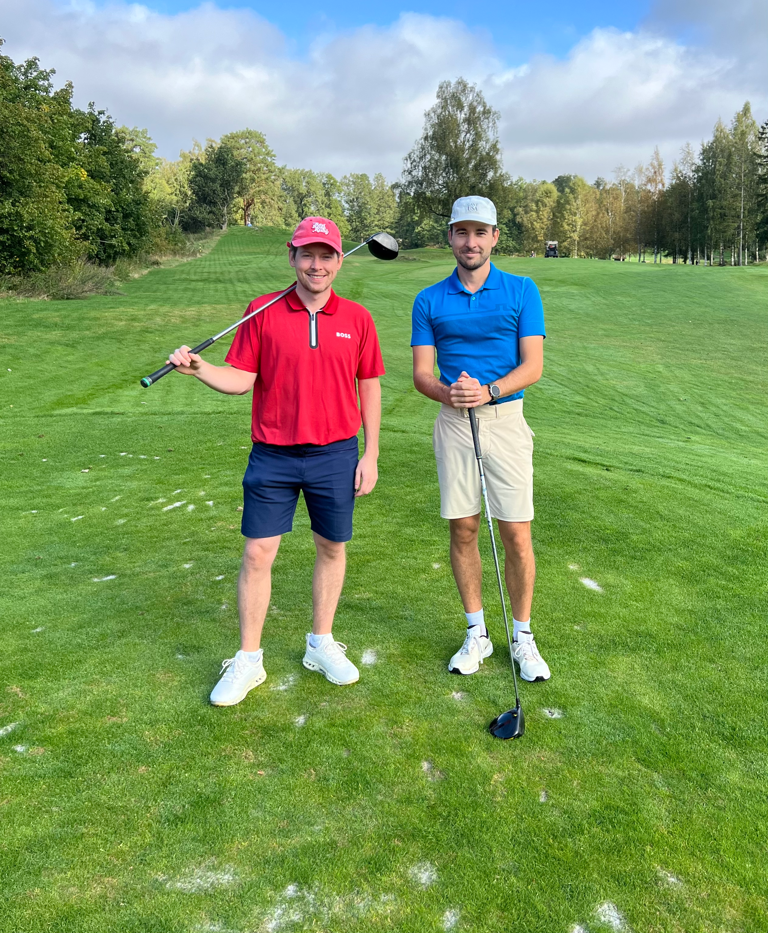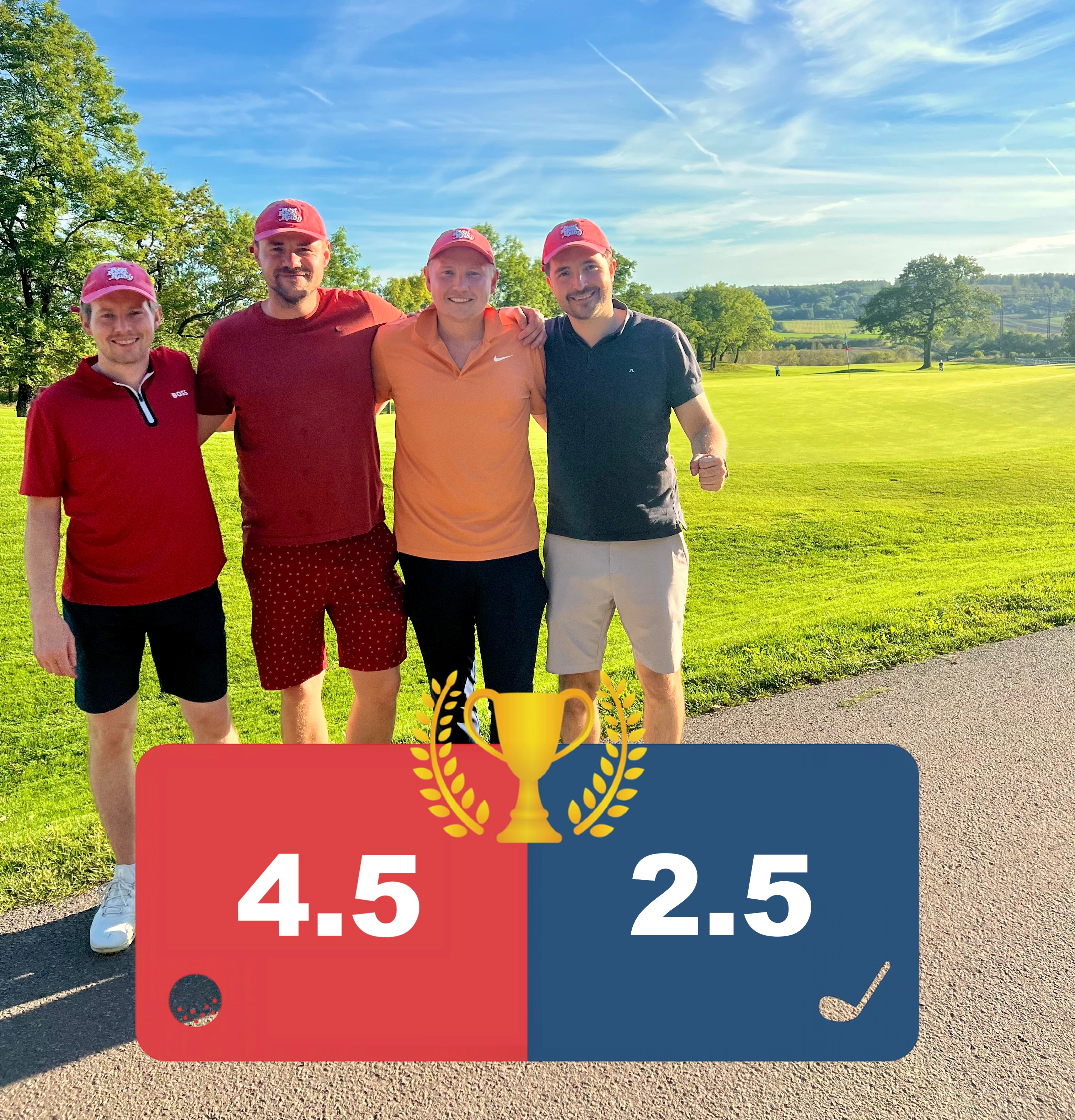 Lørdag startet grytidlig, og det var en sleten gjeng som tråkket opp på første tee på Vestfold GK. Lørdag ble en parademarsj for rødt. For mens det lenge var jevnt i match nummer to, gjorde tour rookie Bendik (og Alex) kort prosess i første match. Når også Lars og Simen skrudde opp tempoet var det til slutt rødt som vant begge matchene og festet et solid grep om trofeet!